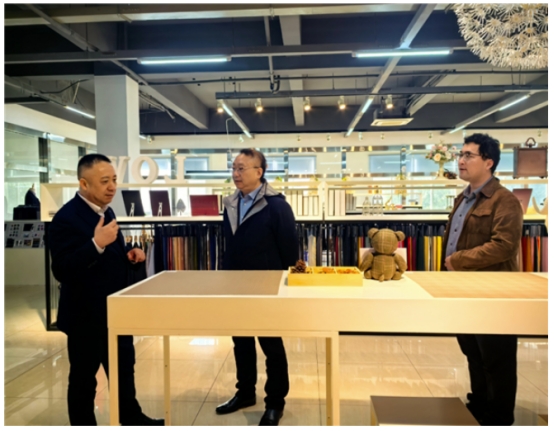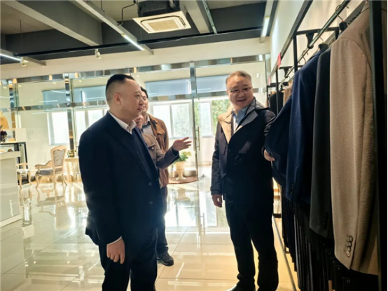 調(diào)研期間,領(lǐng)導(dǎo)一行率先走進(jìn)公司展廳,實(shí)地觀摩新產(chǎn)品、新技術(shù)、新材料的應(yīng)用成果。周新祥總經(jīng)理現(xiàn)場(chǎng)講解了新品研發(fā)面料的核心優(yōu)勢(shì)與科研突破,孫瑞哲會(huì)長(zhǎng)深入了解企業(yè)生產(chǎn)經(jīng)營(yíng)詳情,對(duì)雅戈?duì)柮徳诩夹g(shù)創(chuàng)新、可持續(xù)發(fā)展、人才培養(yǎng)等方面的亮眼成績(jī)給予高度評(píng)價(jià)。