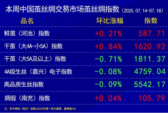 本周,生絲電子指數(shù)累計微跌0.08%。