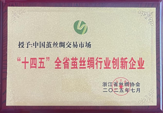 2025年7月21日,浙江省絲綢協(xié)會第七屆會員代表大會暨七屆一次理事會在杭州市隆重召開,會議上對獲評“十四五”浙江省繭絲綢行業(yè)創(chuàng)新企業(yè)”的單位進行了表彰和授牌,中國繭絲綢交易市場獲此殊榮。