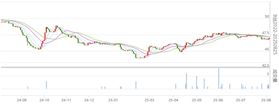 今日(2025年08月06日,周三)中國繭絲綢交易市場生絲電子指數(shù)上漲0.65%報(bào)收于4721.77點(diǎn)。B絲2022D(商檢4A級生絲):250825合約上漲0.18萬元報(bào)收于47.01萬元;250925合約上漲0.15萬元報(bào)收于47.07萬元;260325合約上漲0.33萬元報(bào)收于47.58萬元。