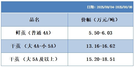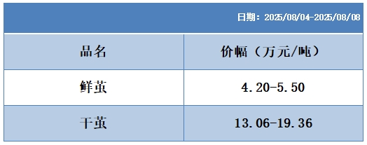 根據(jù)本周蠶繭報價按照指數(shù)方案形成的基準品價格區(qū)間