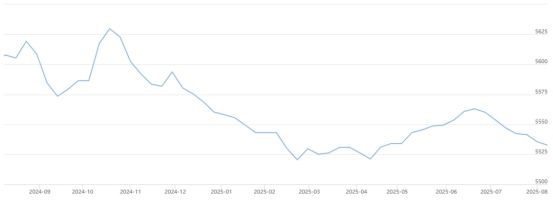 今日(2025年08月08日,周五)中國繭絲綢交易市場生絲電子指數(shù)上漲0.16%報收于4736.98點,本周生絲指數(shù)累計上漲0.79%。B絲2022D(商檢4A級生絲):250825合約上漲0.06萬元報收于47.13萬元;250925合約上漲0.03萬元報收于47.22萬元;260325合約上漲0.15萬元報收于47.85萬元。