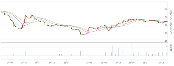 今日(2025年08月14日,周四)中國繭絲綢交易市場生絲電子指數(shù)微漲0.05%報收于4742.16點。B絲2022D(商檢4A級生絲):250825合約報平收于47.16萬元;250925合約上漲0.09萬元報收于47.22萬元;260325合約上漲0.09萬元報收于47.76萬元。