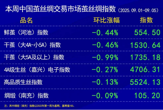 本周,高品質(zhì)生絲價格指數(shù)繼續(xù)有所小幅下滑。部分協(xié)作單位有所下調(diào)價格。