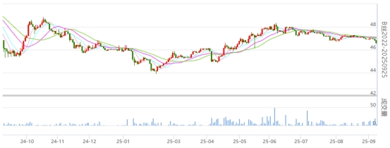 今日(2025年09月08日,周一)中國繭絲綢交易市場生絲電子指數(shù)下跌0.50%報收于4682.80點。B絲2022D(商檢4A級生絲):250925合約下跌0.21萬元報收于46.62萬元;260325合約下跌0.33萬元報收于46.74萬元;260925合約下跌0.12萬元報收于47.52萬元。