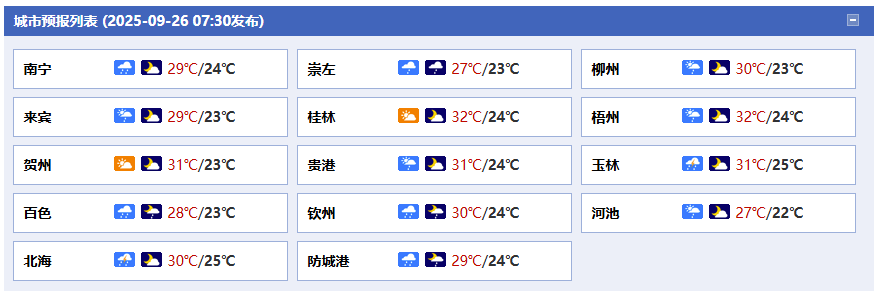 廣西氣象臺(tái)26日05時(shí)發(fā)布預(yù)報(bào):