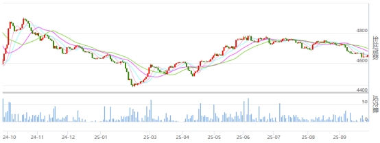 今日(2025年09月26日,周五)中國(guó)繭絲綢交易市場(chǎng)生絲電子指數(shù)上漲0.26%收于4653.86點(diǎn)。B絲2022D(商檢4A級(jí)生絲):251025合約上漲0.21萬元報(bào)收于46.56萬元;260325合約上漲0.21萬元報(bào)收于46.68萬元;260925合約報(bào)平,收于46.65萬元。