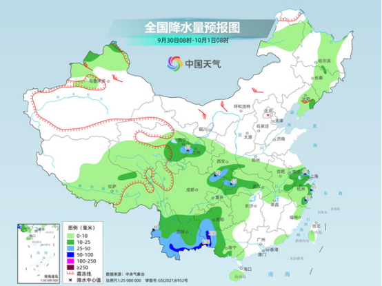 今天(9月30日),隨著今年第20號(hào)臺(tái)風(fēng)“博羅依”減弱消散,廣西、云南等地雨勢(shì)也逐漸減弱,但局地仍有大暴雨。國(guó)慶中秋假期首日,我國(guó)降雨將再度發(fā)展,華西至黃淮局地有暴雨或大暴雨來(lái)襲,恰逢出行高峰,需防范道路濕滑和低能見(jiàn)度帶來(lái)的不利影響。南方多地炎熱持續(xù),福建、浙江等地需警惕秋老虎,做好防暑措施。