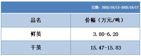 鮮繭價格指數上,廣西等主產區(qū)第三至第五批秋繭收購持續(xù)推進,工廠平均收購價環(huán)比上周繼續(xù)有所走高,帶動鮮繭價格指數收紅。短期鮮繭端的成本支撐效應有所強化。