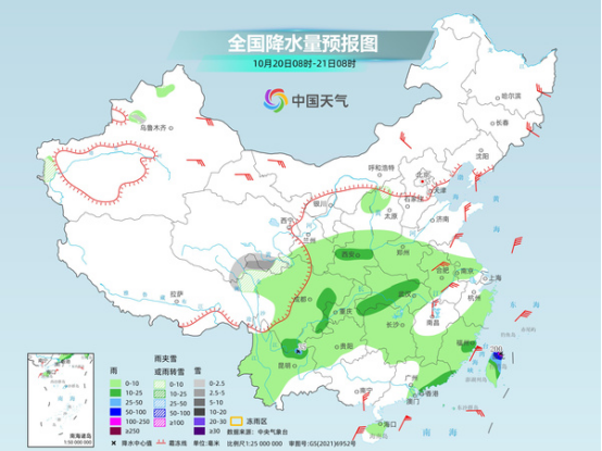 今明天,華西秋雨區(qū)降雨仍頻繁,不少地方隨著氣溫下降,雨雪相態(tài)將發(fā)生轉換,公眾外出需小心慢行,注意交通安全。臺風“風神”進入南海后將遭遇冷空氣,導致其路徑轉向偏南,登陸我國的可能性大大降低,且臺風強度也會受到冷空氣破壞,但冷空氣和臺風“風神”結合會給我國東部及南部海域帶來長時間的大風天氣,將持續(xù)到24日,相關海域作業(yè)平臺以及往來船舶要做好防御大風的準備。