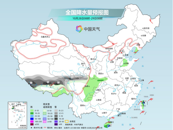 未來三天(10月28日至30日),青藏高原部分地區(qū)雨雪頻繁,局地有暴雪或大暴雪,需注意做好相關防御措施。此外,明天,我國中東部地區(qū)降水將增多,公眾雨雪天出行請留意交通安全。氣溫方面,今明天,我國大部氣溫回升,但晝夜溫差拉大,公眾請適時調(diào)整著裝,謹防感冒。