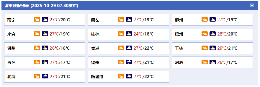廣西氣象臺(tái)29日05時(shí)發(fā)布預(yù)報(bào):