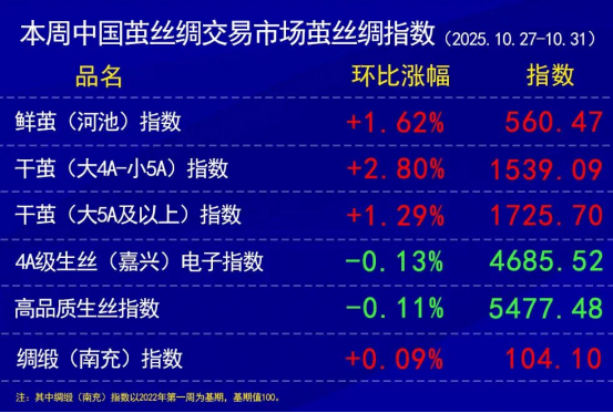 今日也為10月的最后一個(gè)交易日,在蠶繭收購(gòu)偏強(qiáng)的核心帶動(dòng)下,本月生絲電子指數(shù)小幅收陽(yáng),但上漲力度有限,尚未突破9月高點(diǎn),月度走勢(shì)呈現(xiàn)溫和回升特征。