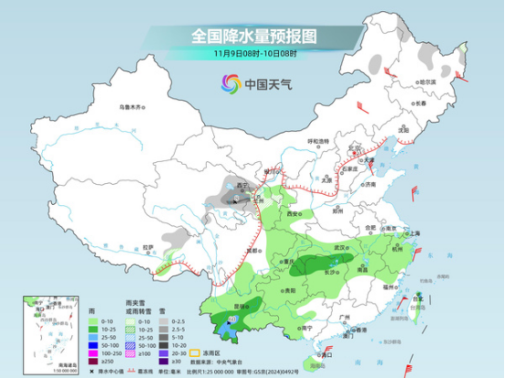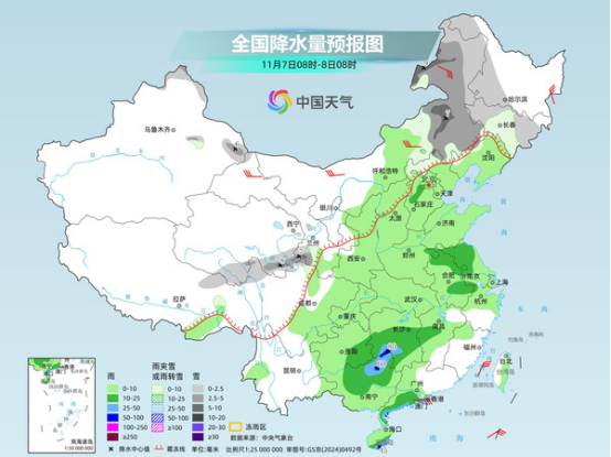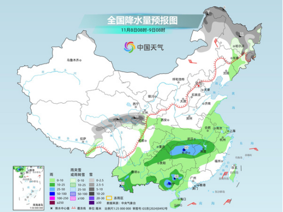 明天,內(nèi)蒙古東北部、東北地區(qū)東部和北部、青海南部、甘肅西南部、川西高原北部等地部分地區(qū)有小到中雪或雨夾雪,局地有大到暴雪。江漢東部、江南北部、貴州中北部、云南西南部和東部、廣西東部和南部等地部分地區(qū)有中到大雨,局地有暴雨。
