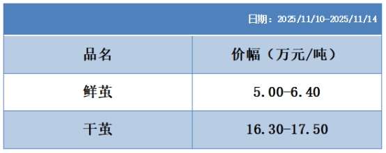 本周高品位生絲協(xié)作單位成交價(jià)格區(qū)間