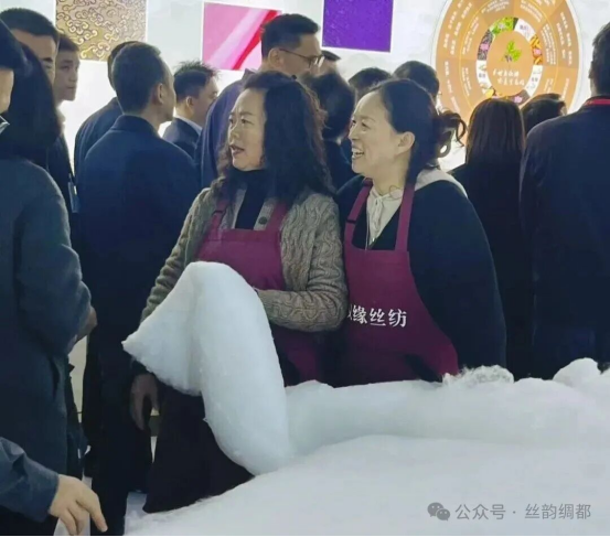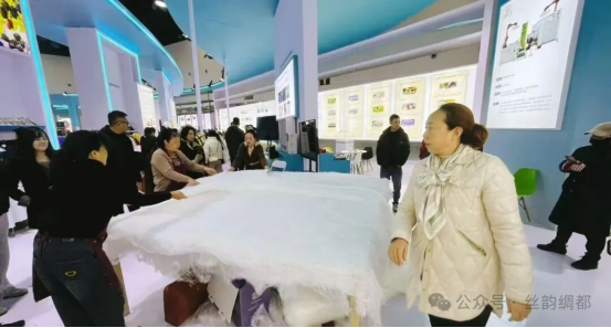 漢緣絲綢的展位前,人頭攢動(dòng)、絡(luò)繹不絕。不同于常規(guī)展示,企業(yè)特意安排工人現(xiàn)場(chǎng)展演蠶絲被制作技藝——蓬松輕柔的絲棉在指尖舒展,光澤細(xì)膩溫潤(rùn),這背后是企業(yè)獨(dú)有的鮮繭取絲工藝在發(fā)力。“我們堅(jiān)持用鮮繭直接取絲,能最大程度保留蠶繭的天然繭素和瑩潤(rùn)光澤?!爆F(xiàn)場(chǎng)負(fù)責(zé)人介紹,公司不僅選用100%正繭上等絲棉,更在省內(nèi)首創(chuàng)鮮正繭絲棉片手工制被技術(shù)。展位上,市纖維檢驗(yàn)所出具的47項(xiàng)全合格檢驗(yàn)報(bào)告與市級(jí)非遺認(rèn)證牌匾并排陳列,讓消費(fèi)者買(mǎi)得安心?!懊饋?lái)像云朵一樣軟,又有這么多保障,果斷給父母也帶一套。”剛提走兩床蠶絲被的張先生笑著說(shuō)。