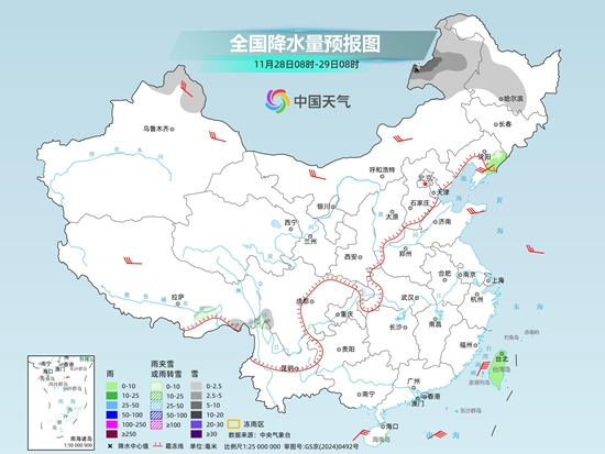 具體來看,今天新疆北疆北部、內(nèi)蒙古東部、黑龍江中部、西藏東南部等地部分地區(qū)有小雪或雨夾雪,其中,內(nèi)蒙古東北部局地有中到大雪。遼寧東部、臺(tái)灣島等地部分地區(qū)有小雨。