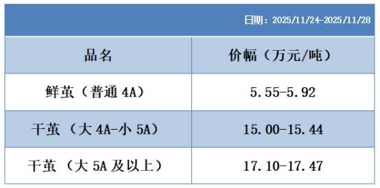 本周高品位生絲協(xié)作單位成交價(jià)格區(qū)間