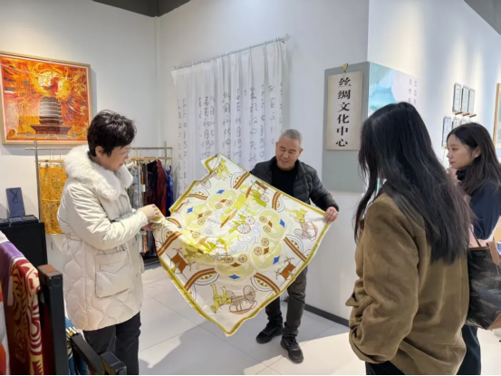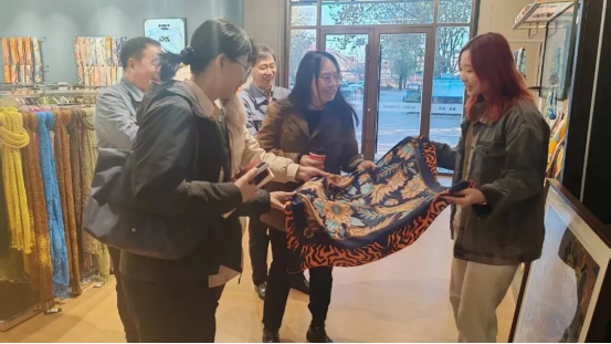 在淄博大染坊絲綢集團(tuán)有限公司,實(shí)地參觀了生產(chǎn)車間、絲綢主題文化展廳。作為全國制造業(yè)單項(xiàng)冠軍示范企業(yè),大染坊擁有從繅絲、織造到練染印的完整產(chǎn)業(yè)鏈,其絲綢面料織造產(chǎn)量穩(wěn)居全國首位。企業(yè)將傳統(tǒng)絲織技法融入現(xiàn)代生產(chǎn)工藝,創(chuàng)新研發(fā)的國潮國風(fēng)絲巾等系列手造產(chǎn)品,暢銷全球50多個國家地區(qū)。