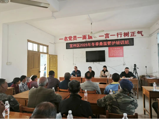 培訓采取“理論授課+物資幫扶”相結合的方式,將實用技術和農(nóng)用物資送到田間地頭,切實幫助蠶農(nóng)解決生產(chǎn)難題,為桑蠶產(chǎn)業(yè)高質(zhì)量發(fā)展夯實基礎。培訓現(xiàn)場,桑蠶中心技術人員用通俗易懂的語言,為農(nóng)戶講解桑園冬季管護、病蟲害綠色防控等關鍵技術,詳細解析家蠶常見病害的識別診斷與綜合防治方法,并反復強調(diào)“預防為主、防治結合”的科學養(yǎng)殖理念。農(nóng)戶們認真翻閱技術手冊,邊聽邊記,積極提問,技術人員一一耐心解答,現(xiàn)場學習氣氛熱烈。
