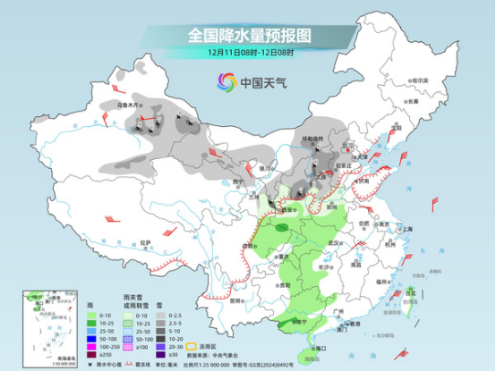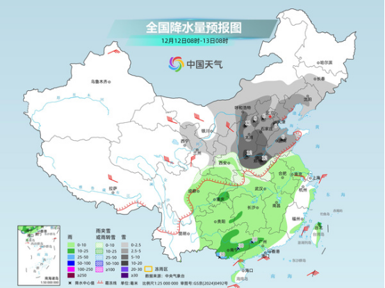 后天,內(nèi)蒙古西部、東北地區(qū)中南部、甘肅中部、華北、黃淮、江漢西部等地部分地區(qū)有小到中雪或雨夾雪,其中,內(nèi)蒙古中部、山西、河北中南部、遼寧中部、河南中北部等地局地大雪到暴雪。西南地區(qū)東部、江漢、江淮、江南、華南大部等地部分地區(qū)有小到中雨,其中,廣西南部、廣東西部等地部分地區(qū)有大雨。