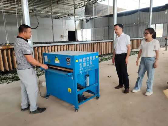 基地重點(diǎn)引進(jìn)并示范推廣高速切葉機(jī)、電動喂蠶車、自動上蔟機(jī)、氣動式快速摘繭機(jī)等新型專用機(jī)械設(shè)備,推動從桑葉采收、處理、飼喂到上蔟、采繭等主要生產(chǎn)環(huán)節(jié)的機(jī)械化作業(yè)。通過提升機(jī)械化水平,不僅減輕了勞動強(qiáng)度,也促進(jìn)了生產(chǎn)標(biāo)準(zhǔn)化和蠶繭品質(zhì)的穩(wěn)步提高。項(xiàng)目承擔(dān)單位積極探索“公司+基地+農(nóng)戶”等利益聯(lián)結(jié)機(jī)制,目前已組織開展機(jī)械化養(yǎng)蠶技術(shù)培訓(xùn)超過100人次,帶動周邊農(nóng)戶學(xué)習(xí)使用新機(jī)具、新技術(shù),共享產(chǎn)業(yè)升級帶來的發(fā)展成果動周邊農(nóng)戶應(yīng)用新機(jī)具、新技術(shù),共享產(chǎn)業(yè)發(fā)展紅利。