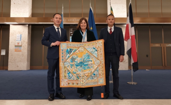 下午,萬國宮會議廳的議程精彩紛呈。聯(lián)合國貿(mào)易與發(fā)展會議(UNCTAD)地理標志官員斯特凡諾?伊納瑪深入解析了全球地理標志產(chǎn)業(yè)的發(fā)展趨勢。世界貿(mào)易網(wǎng)點聯(lián)盟(WTPF) 卡洛琳娜-昆塔娜女士在會議中強調(diào)了地理標志對全球貿(mào)易的推動作用。六合集團總經(jīng)理明剛分享了企業(yè)百余年來絲綢傳承與創(chuàng)新之路,從 1912 年至今,該集團致力于深耕絲綢全產(chǎn)業(yè)鏈,產(chǎn)品曾先后出口30 多個國家和地區(qū),其新品 “六合?天地四方” 絲巾,運用AI技術(shù),完美融合地域文化與東方美學,成為南充絲綢文化的鮮活載體。本次活動組委會秘書長駱建哲,北京國際經(jīng)濟貿(mào)易發(fā)展協(xié)會雷堃,南充市紡織工會聯(lián)合會主席張林先后發(fā)言,介紹了中國地理標志產(chǎn)品品牌發(fā)展現(xiàn)狀,展現(xiàn)中國地理標志品牌的發(fā)展活力。