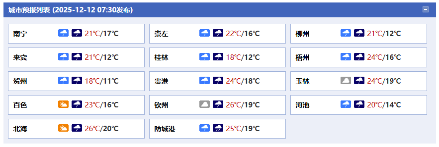 廣西氣象臺(tái)12日05時(shí)發(fā)布預(yù)報(bào):