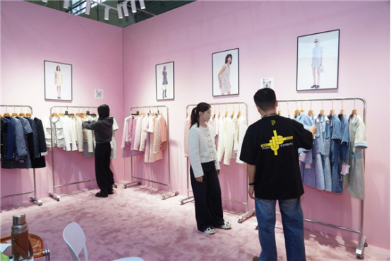 走進(jìn)展廳,華經(jīng)服飾的小香風(fēng)外套便吸引了許多人的目光,這家深耕行業(yè)15年的企業(yè)主打中高端梭織產(chǎn)品,訂單已排至明年四月,“我們梭織品類豐富多元,此次專屬帶來‘小香風(fēng)’系列,憑借差異化優(yōu)勢(shì)圈粉不斷?!必?fù)責(zé)人李晶晶很熱情地推介著。
