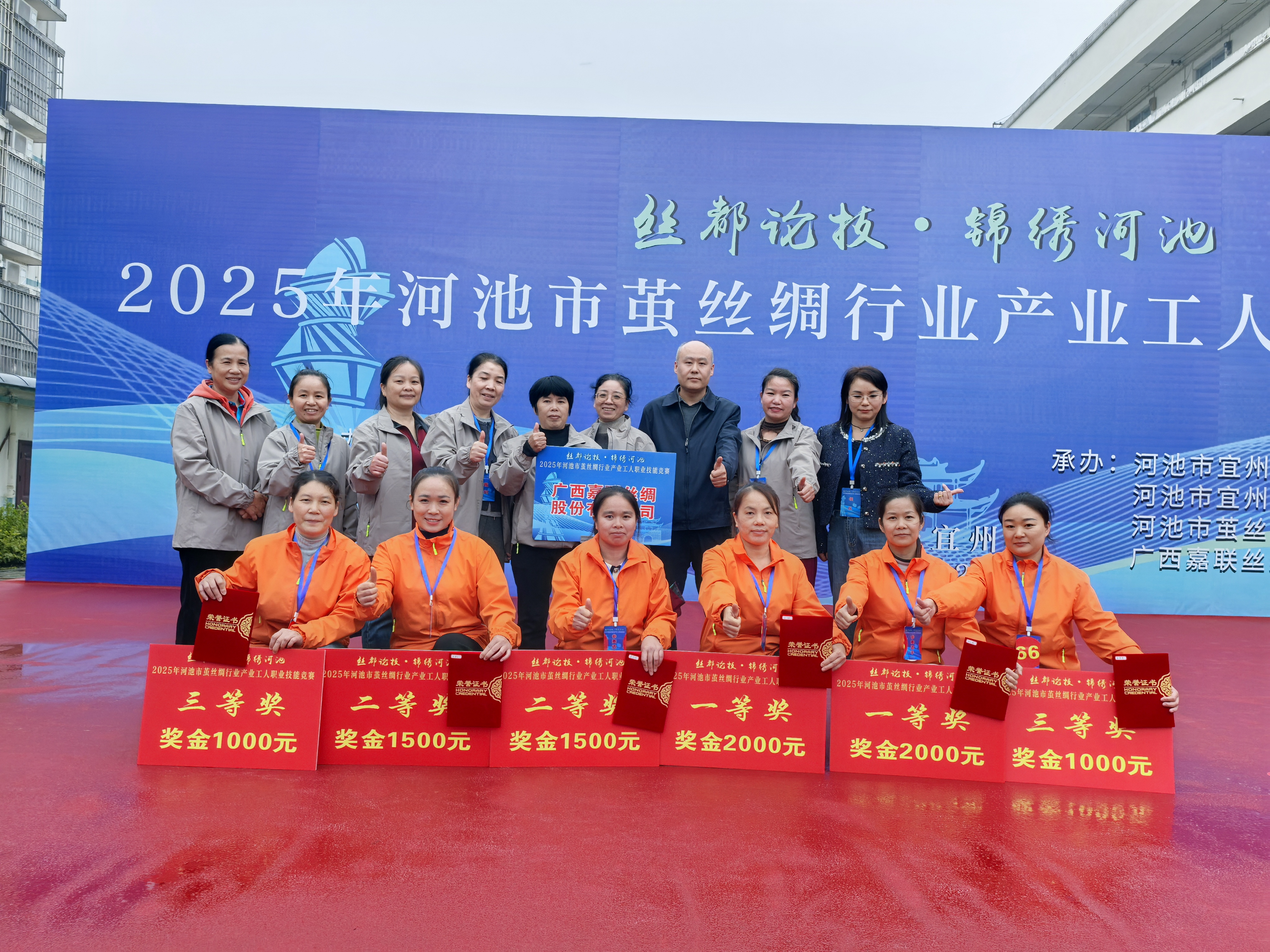 當(dāng)日下午4時(shí),競(jìng)賽結(jié)果正式揭曉:廣西嘉聯(lián)的韋玉鳳、石岫分別斬獲一等獎(jiǎng)第1名、第3名,廣西桂華的黃佩歡榮獲一等獎(jiǎng)第2名;廣西江緣、廣西嘉聯(lián)、宜州同福、環(huán)江桂豐、東方絲路的7名選手獲得二等獎(jiǎng);廣西嘉聯(lián)、河池恒業(yè)、廣西桂華、河池誠(chéng)信、河池桂宜、廣西江緣、東方絲路、環(huán)江桂豐的11名選手獲得三等獎(jiǎng);環(huán)江桂豐、宜州同福、廣西嘉聯(lián)、河池恒業(yè)、東方絲路、廣西桂華、城西常樂、河池桂宜、宜州宏基、廣西江緣、河池誠(chéng)信、廣西嘉鳳、河池常樂、河池明晟、寶玉制絲等公司的參賽選手獲得優(yōu)秀獎(jiǎng)。
