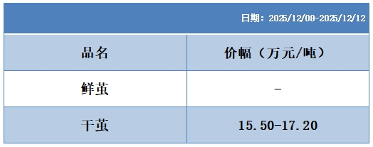 注:本周全國鮮繭上市已基本結(jié)束。鑒于后續(xù)鮮繭價(jià)格數(shù)據(jù)將采用協(xié)作單位報(bào)送的生絲成交價(jià)格、工本費(fèi)、庫存繭本、毛折等指標(biāo)綜合推導(dǎo)。為保障數(shù)據(jù)采集與校驗(yàn)工作充分開展,特為協(xié)作單位預(yù)留數(shù)據(jù)準(zhǔn)備時(shí)間。本周鮮繭價(jià)格指數(shù)延續(xù)上周數(shù)值。衷心感謝各協(xié)作單位的大力支持配合!