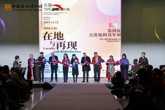 中國(guó)絲綢博物館季曉芬館長(zhǎng)、杭州師范大學(xué)美術(shù)學(xué)院王中焰院長(zhǎng)、新疆巴州文博院淳雪鳳院長(zhǎng),以及來自美、印度、墨西哥、德國(guó)、波蘭等國(guó)家的參展設(shè)計(jì)師共同為“在地與再現(xiàn):天染當(dāng)代藝術(shù)設(shè)計(jì)展”進(jìn)行了開幕剪彩。