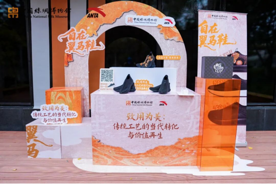 “雅士沙龍”也是中國(guó)絲綢博物館攜手安踏集團(tuán)發(fā)起“致敬二十四雅士,弘揚(yáng)中華文化”活動(dòng)的重要組成部分之一,二者共同開(kāi)發(fā)的聯(lián)名款文創(chuàng)“自在翼馬鞋”當(dāng)天也亮相展示區(qū),吸引眾多觀眾駐足觀看。