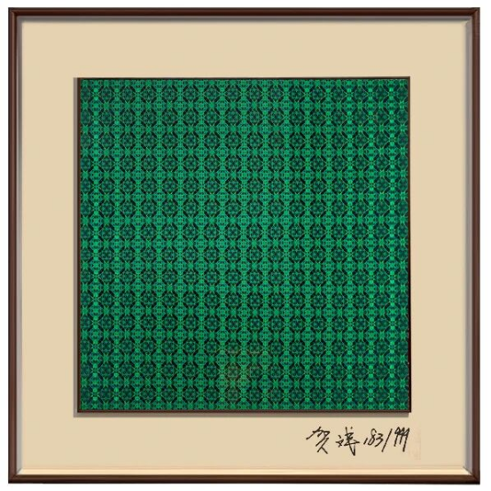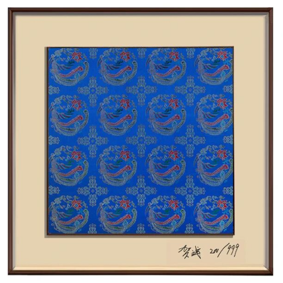 本次呈現(xiàn)的《萬花鏡錦》與《鳳穿牡丹錦》系列手工蜀錦藝術(shù)品是由蜀錦織造技藝國家級代表性傳承人賀斌及非遺傳承人團(tuán)隊,在全球唯一可操作的清代道光年小花樓木織機上,以傳統(tǒng)手工蜀錦織造工藝全手工織造而成。