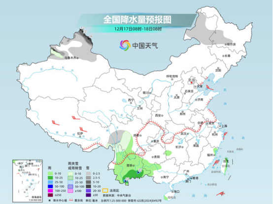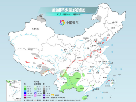 明天,內(nèi)蒙古東北部、黑龍江西南部、新疆北部、川西高原南部等地部分地區(qū)有小到中雪或雨夾雪,其中,新疆阿勒泰地區(qū)和伊犁河谷局地有大到暴雪。西南地區(qū)南部、湖南西部、福建東北部、廣西西北部、海南島西南部等地部分地區(qū)有小到中雨,其中,云南東南部局地有大雨。
