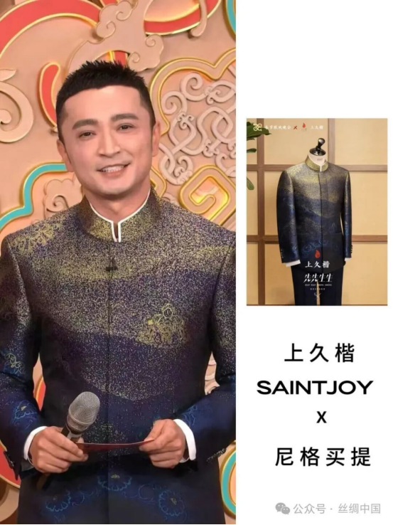 更值得關(guān)注的是,此款《敦煌絲路》服裝,亦是 2025年央視春節(jié)聯(lián)歡晚會(huì)主持人尼格買(mǎi)提先生的同款華服。從國(guó)家級(jí)文藝盛典的舞臺(tái),到長(zhǎng)三角新經(jīng)濟(jì)發(fā)展大會(huì)的講臺(tái),上久楷宋錦頻繁亮相于至關(guān)重要的場(chǎng)合,這絕非偶然。它標(biāo)志著上久楷的產(chǎn)品力與品牌力,已獲得國(guó)家級(jí)審美與價(jià)值標(biāo)準(zhǔn)的認(rèn)可,成為代表中國(guó)形象、傳遞文化自信的“服裝名片”。這一跨越不同頂級(jí)平臺(tái)的穿著選擇,共同印證了上久楷宋錦在高端政務(wù)、商務(wù)與文化場(chǎng)合的非凡適用性與獨(dú)特魅力。