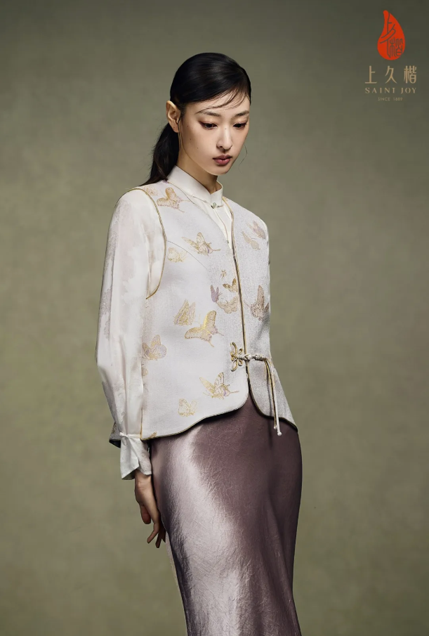 以絲綢之冠的宋錦為面料,匠心裁制成符合當(dāng)代生活美學(xué)的新中式服飾。其既保留了傳統(tǒng)服飾的形制韻味與吉祥寓意,又在剪裁、配色與穿著場(chǎng)景上大膽創(chuàng)新,讓跨越千年的華服真正走入現(xiàn)代生活的日常與重要時(shí)刻。